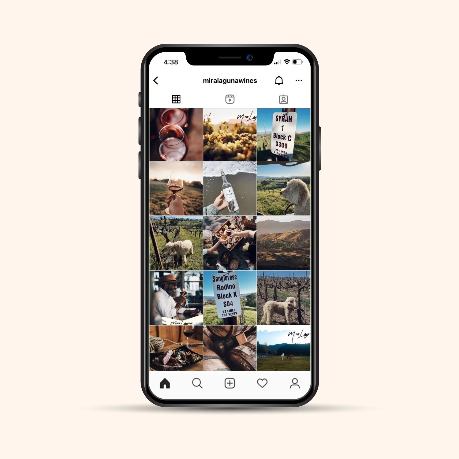 Mira Laguna Wines is an organic estate vineyard in the Santa Ynez Valley with a handful of vendors across California and no tasting room. I was tasked with creating their social media channels from scratch and providing unique content through product photography, branded graphics, and consistent engagement.